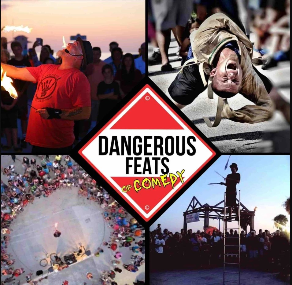 Dangerous Feat of Comedy will be strolling the grounds daily to amaze you